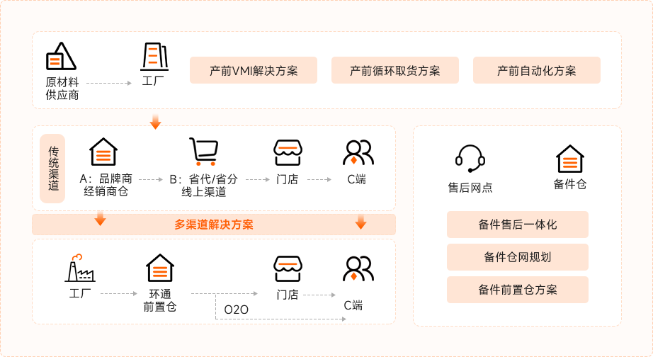 针对物流全过程以及多种增值服务需求提供定制化解决方案,对物流品控做到极致,让商家聚焦其销售业务,降低管理成本。